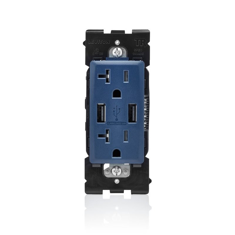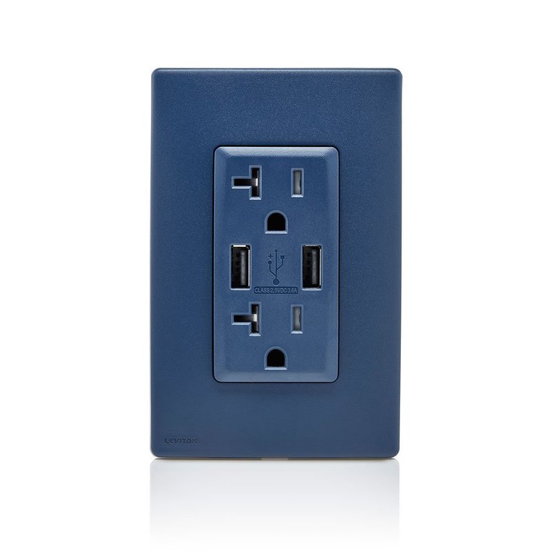 Leviton RUAA2-RN Renu USB Charger/Tamper-Resistant Duplex Outlet, 20A-125VAC, Rich Navy