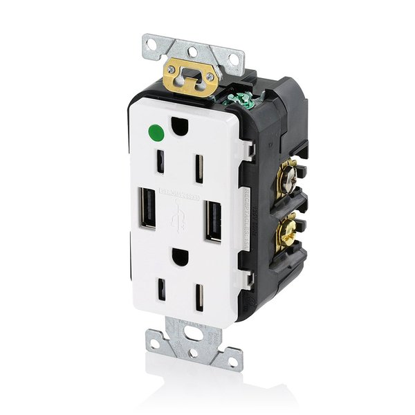 Leviton T5632-HGW 15-Amp Hospital Grade USB Charger/Tamper-Resistant Duplex Receptacle, White