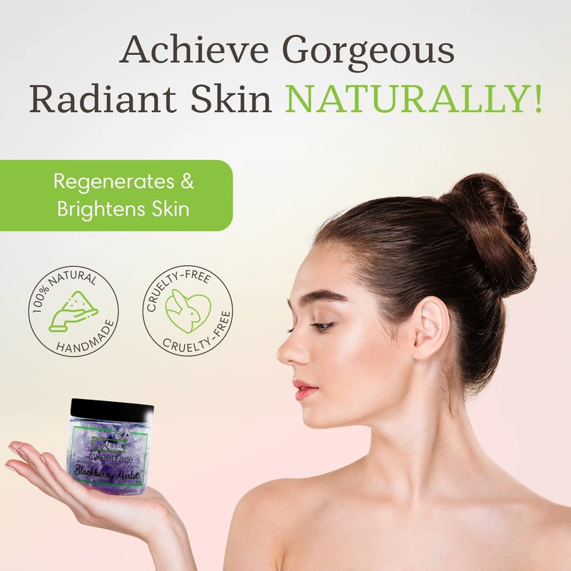 - GENTLE, ALL NATURAL, ANTI-AGING FACE SUGAR SCRUB: Our Sweetface sugar-based blackhead scrub polishes, exfoliates and softens your face with all-natural, skin smoothing sugars and essential oils. Exfoliating with sugar and face oil brightens and moisturizes your complexion and minimizes pores, leaving you with touchably smooth skin and a youthful complexion. Great for both acne and anti aging. Wonderful for neck and décolletage as well.