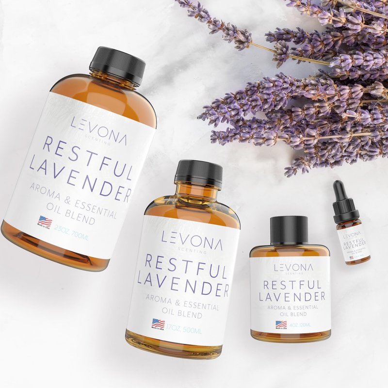 Levona Scents Pure Essential Oils for Diffusers for Home Luxury Scents - Restful Lavender Essential Oil is A Floral Blend of Eucalyptus, Bergamot, Lavender - Aroma Diffuser Oil