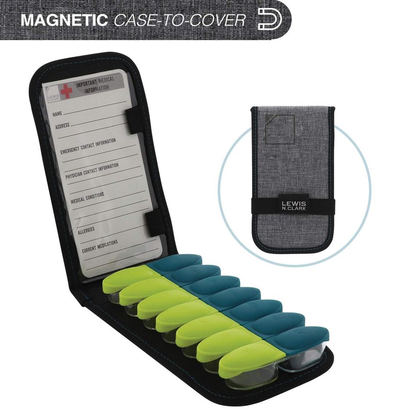 Lewis N. Clark Magnetic Folding Pill Organizer Supplement Case for OTC Medicine, Prescription Vitamins - 14 Slots, Gray/Black (B779)