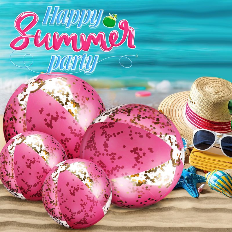 - Glitter Confetti Beach Ball: you can get 2 pieces 24 inch huge beach balls and 10 pieces 16 inch clear beach balls, all with glitter confetti inside, 12 pieces with 2 sizes could satisfy your needs of playing even as decoration, or play with your partners and family
