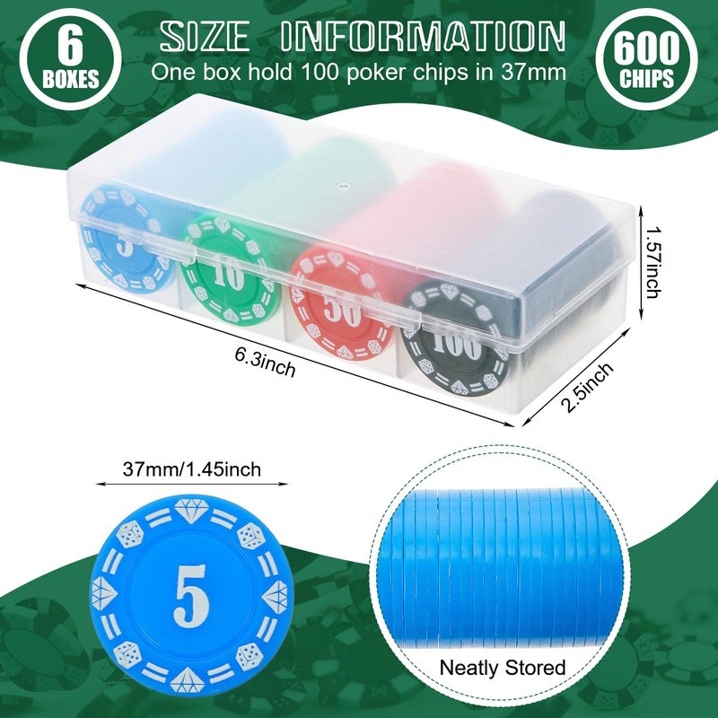 - Convenient to Count: the chips for games are marked with patterns and numbers, 5, 10, 50 and 100, which can lighten your burden of memory and make it easier for you to count the numbers