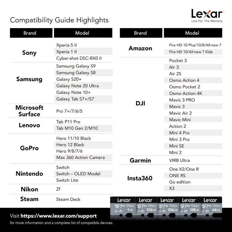 - Professional-level performance for action cameras, drones, Android smartphones, portgable gaming devices such as Nintendor Switch and Steam Deck