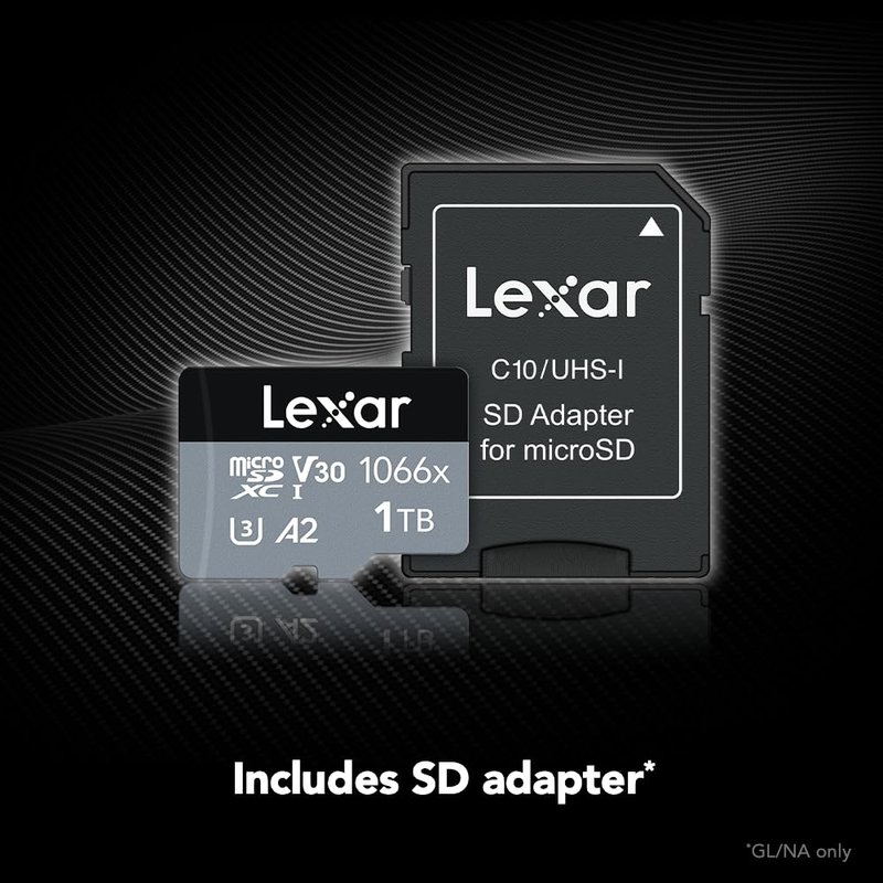 Lexar 1TB Professional 1066x Micro SD Card w/SD Adapter, UHS-I, U3, V30, A2, Full HD, 4K UHD, Up to 160/130 MB/s, for Action Cameras, Drones, Smartphones, Tablets, Nintendo-Switch (LMS1066001T-BNANU)
