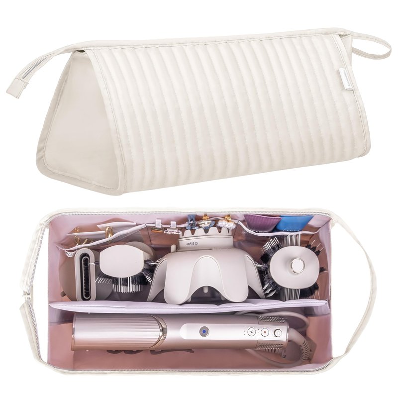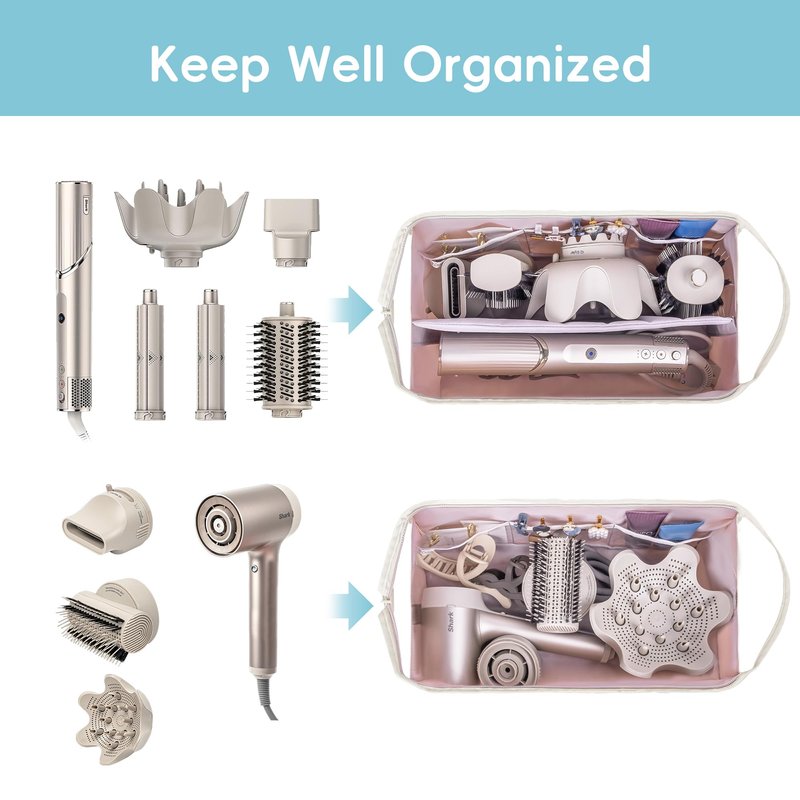 Lexeeco Dy son Air wrap Travel Case Hair Tools Travel Bag for Shark Flexstyle Carrying Case Portable Shark Hair Dryer Revlon Flat Curling Iron Organizer (Beige)