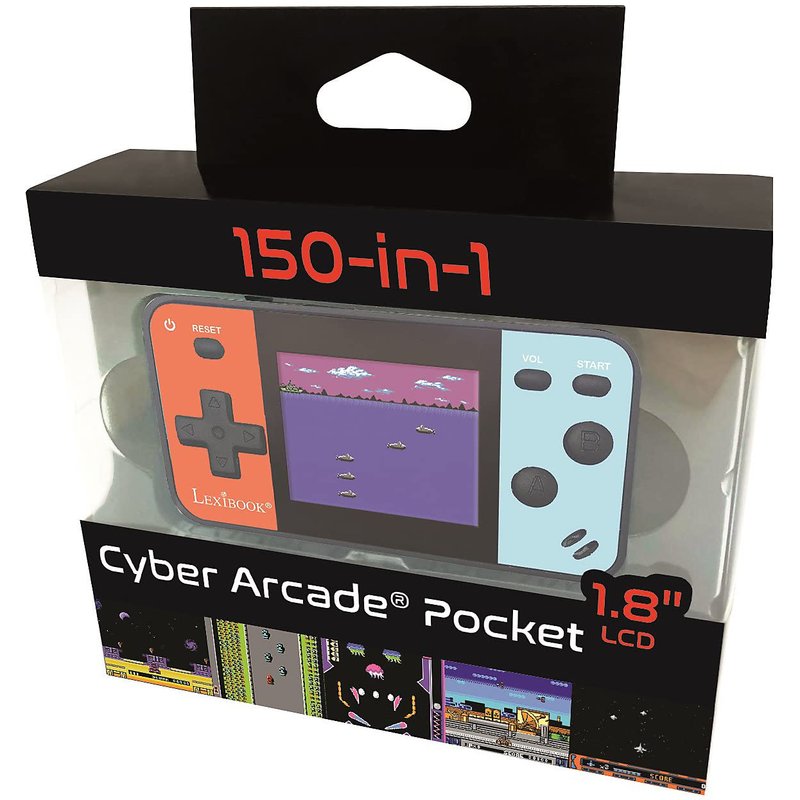 LEXiBOOK Portable Handheld Game Console Cyber Arcade Pocket 150 Games, 1.8" (4.5cm) Color LCD Screen, Gaming Toy for Kids/Teenagers, Blue/red, JL1895