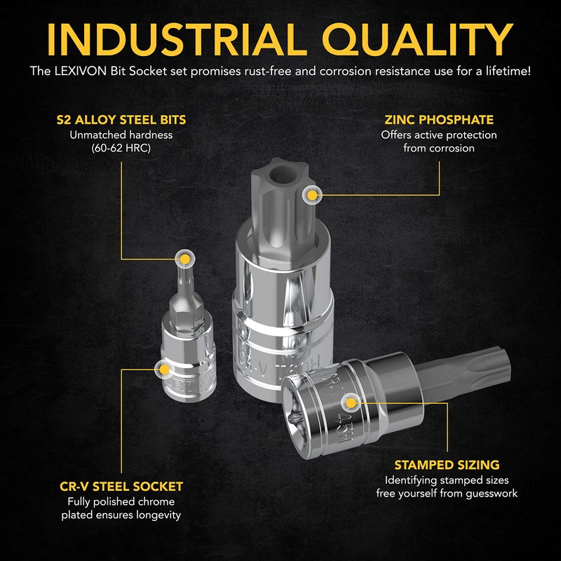 The LEXIVON Bit Socket Set promises rust-free and corrosion resistance use for a lifetime.