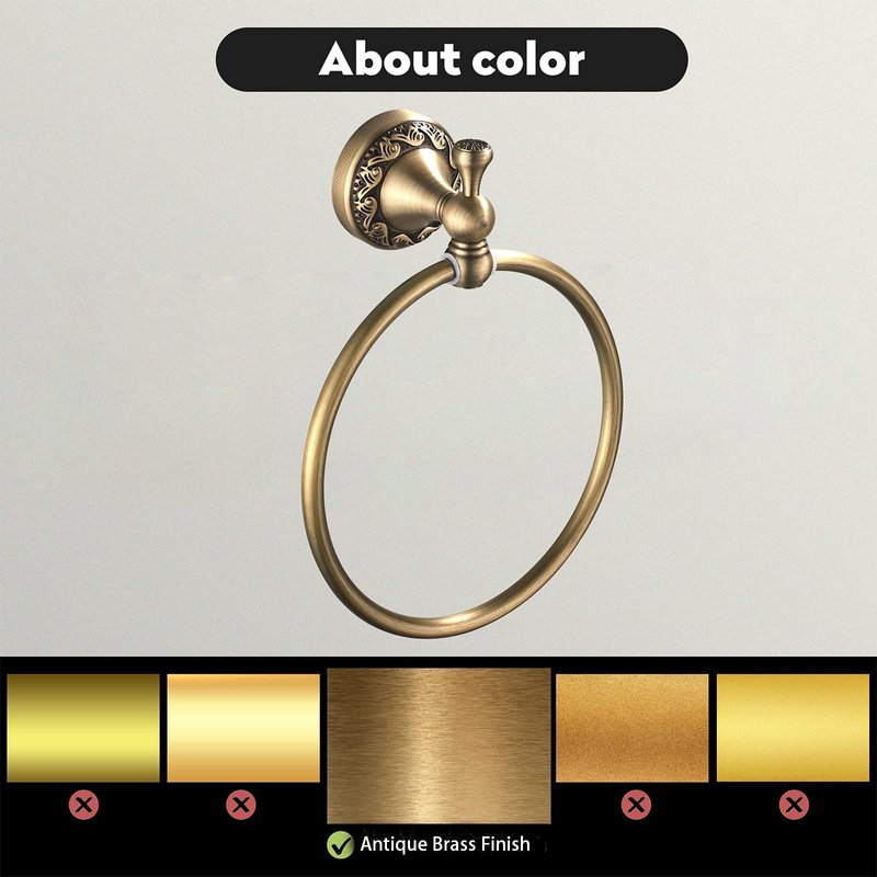 - ANTIQUE BRASS FINISH: This brushed brass towel ring comes with antique brass finish creates a gently distressed golden look with rich light and dark accents.