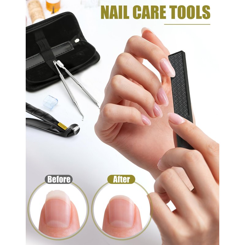 - PROFESSIONAL NAIL CLIPPER SET - An Essential Tool for Keeping Hands & Feet Clean. LEYOUFU nail clipper set includes 1x Angled Head Toenail Clipper, 1x Nail File, 1x Double-ended Ingrown Nail Lifter Tip, 1x Double-ended Nail Pusher, packed in an exquisite leather bag, extremely convenient for you to store and take anywhere.