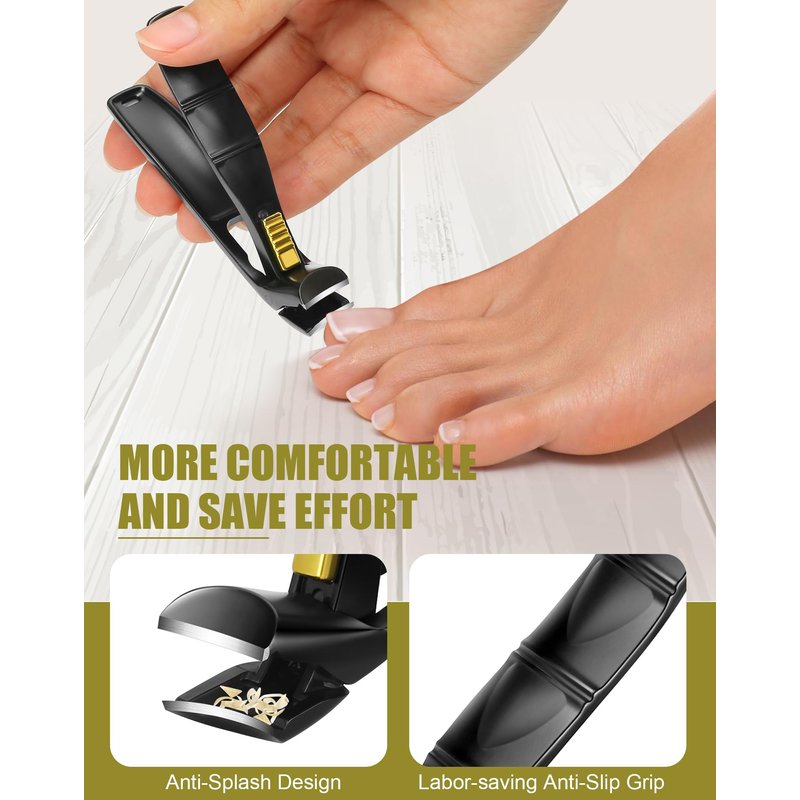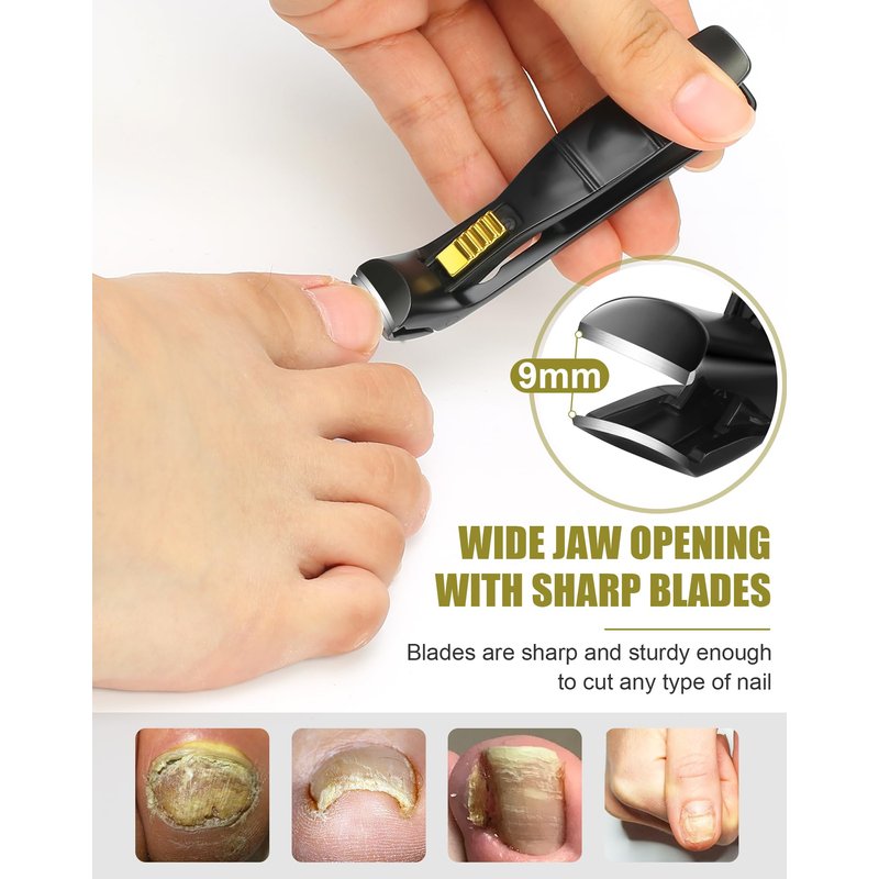 - WIDE JAW OPENING NAIL CLIPPERS - Ideal for Thick Nails. Our thick toenail clipper with wide jaw curved blades can open up to 9mm, perfect nail clipper for trimming thick nails, ingrown nails, paronychia nails, fungal nails, large toenails and side nails. In addition, the spill-proof design catches most nail clippings, effectively preventing nail clippings from splashing and hurting your eyes, and keeping the room tidy after trimming.