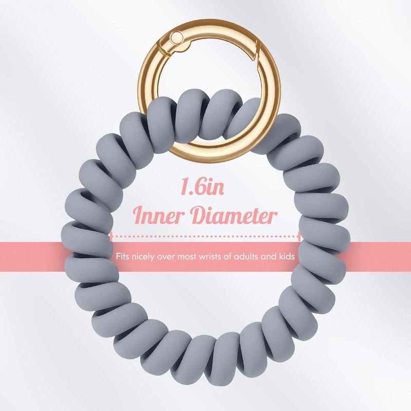- WIDELY USAGE - Remove the metal key rang to be good work as hair ties, and not hurt your hair;as coil wristband is comfortable and secure,and also is a beautiful fashion bracelet;good gifts for mom,girl and friends.Also Leaving key ring of wrist Key coil, it will be good for holding key,whistle,number band when wear or hood.