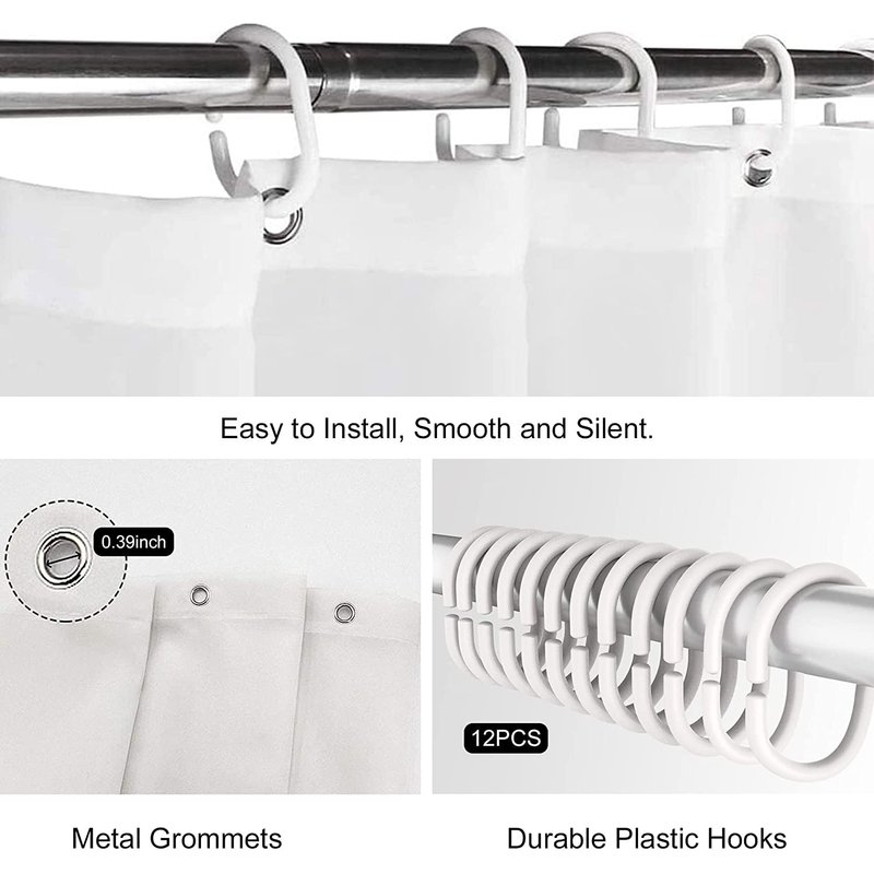 - ♥WHAT'S INCLUDED: Each package provides one 60” Width x 71” Length polyester shower curtain and 12 plastic hooks.