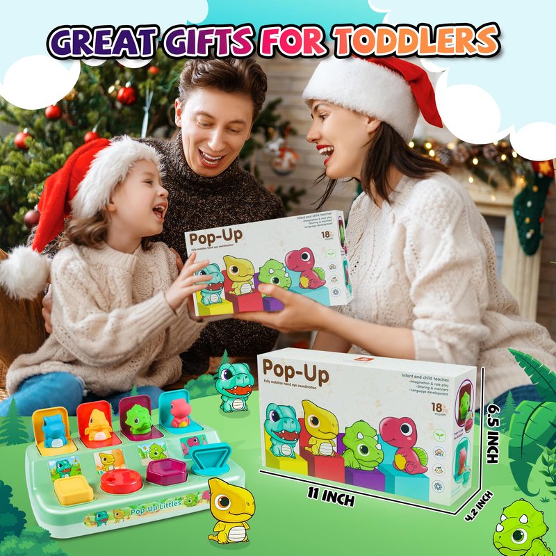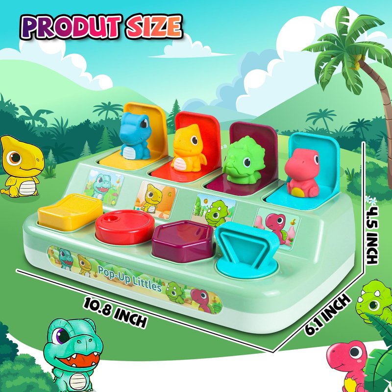 - Educational Toy for 1 Year Old Boys Girls: Pop-up dinosaur toy for early development, helps to stimulate children's imagination and desire to explore, improving toddlers' hand-eye coordination, fine motor skills, colour and number recognition;