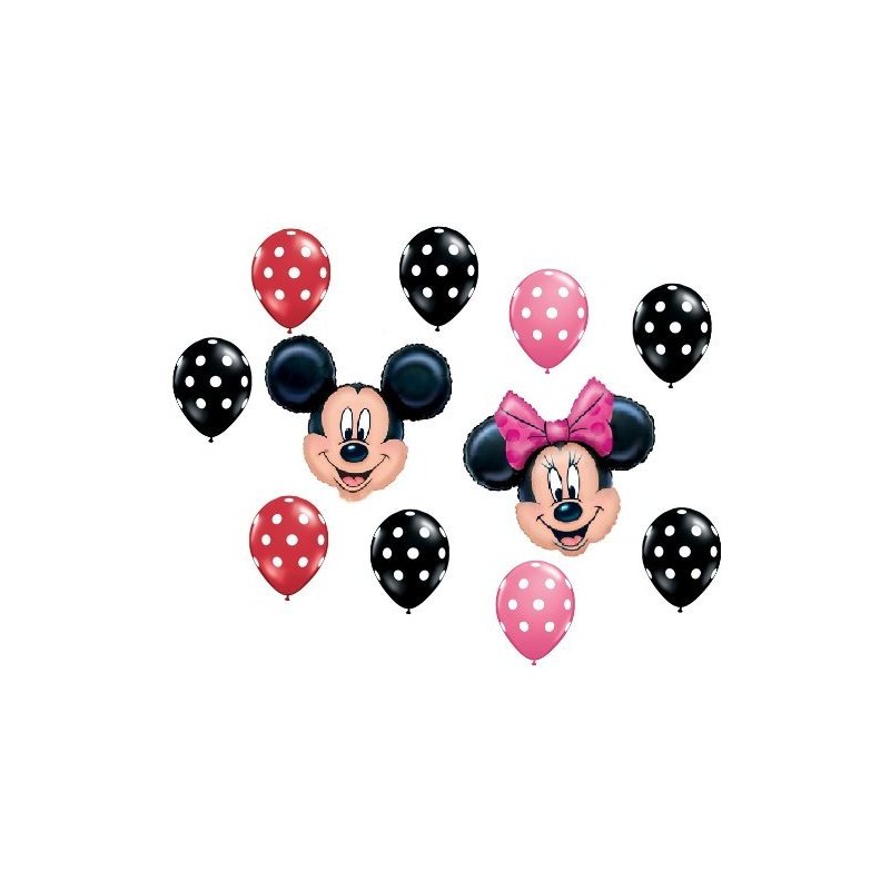 Lgp Mickey Minnie Mouse Red Black Pink Polka Dots Heads Mylar Latex Balloons Set Kit