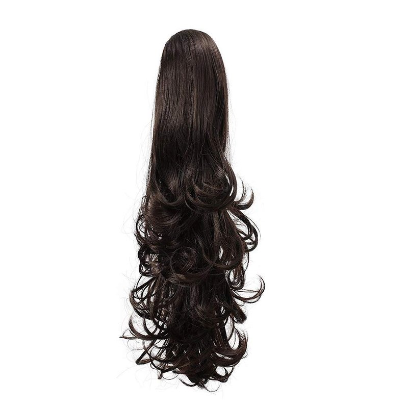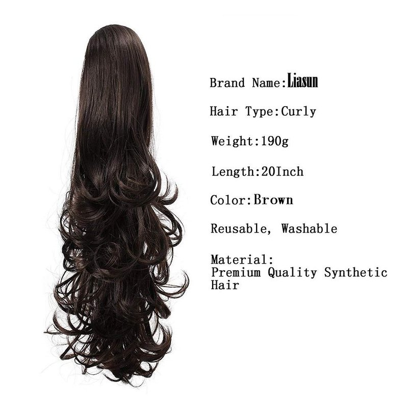 Liasun 20" 190g Curly Claw Clip Ponytail Hair Extension, Synthetic Hairpiece Long Curled Wavy Pony Tail Extension for Women Girls (Dark Brown)