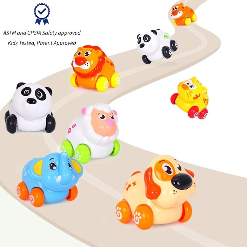 Liberty Imports 8 PCS Cartoon Animals Friction Push and Go Toy Cars Play Set for Babies and Toddlers | Cute Mini Play Vehicles Party Favors - Age 18 Months and Up