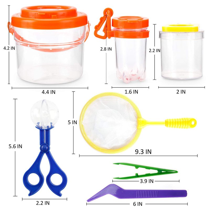 - Each set includes a Butterfly Net, Bug Catcher, Tweezers, Transfer Capsule, 2 Bug Carriers with Magnifier
