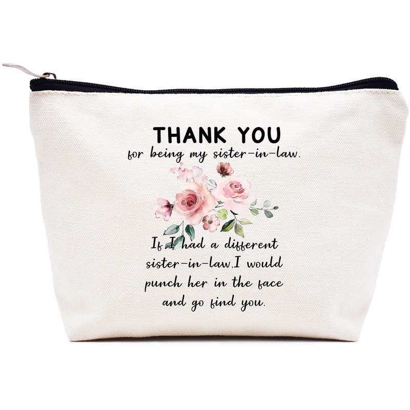LIBIHUA Thank You for Being My Sister In Law - Funny Sister-In-Law Gift - Unique Family Gag Gift - Birthday Christmas Novelty Present Ideas for Sister In Law – Makeup Bag Cosmetic Bag Travel Pouch