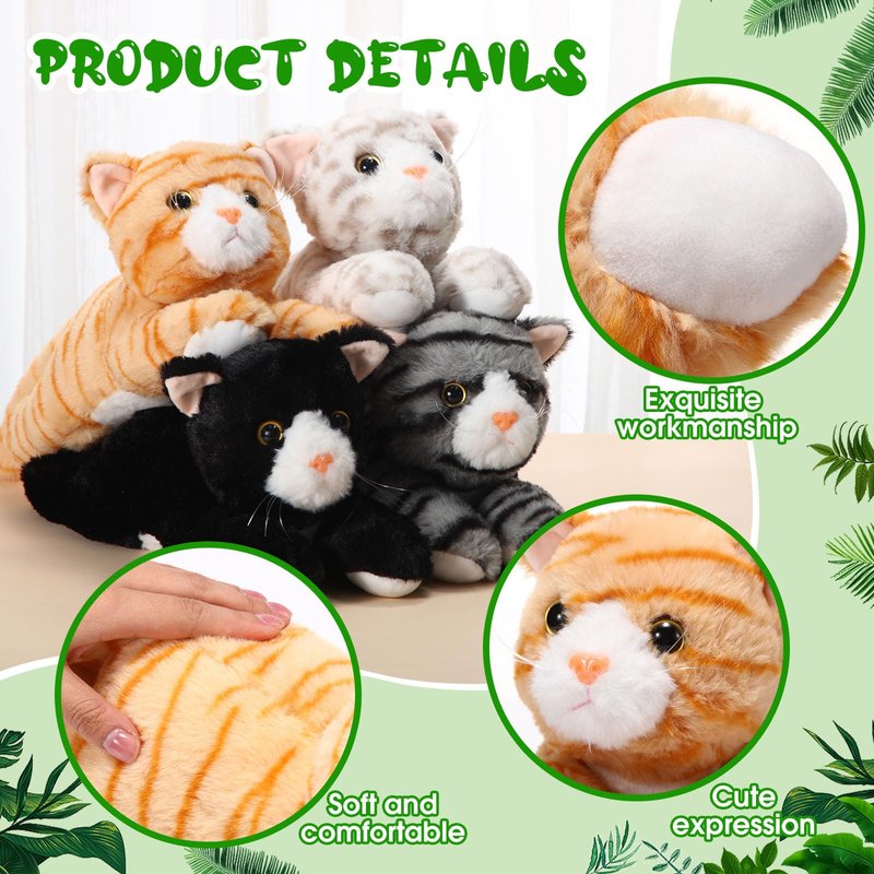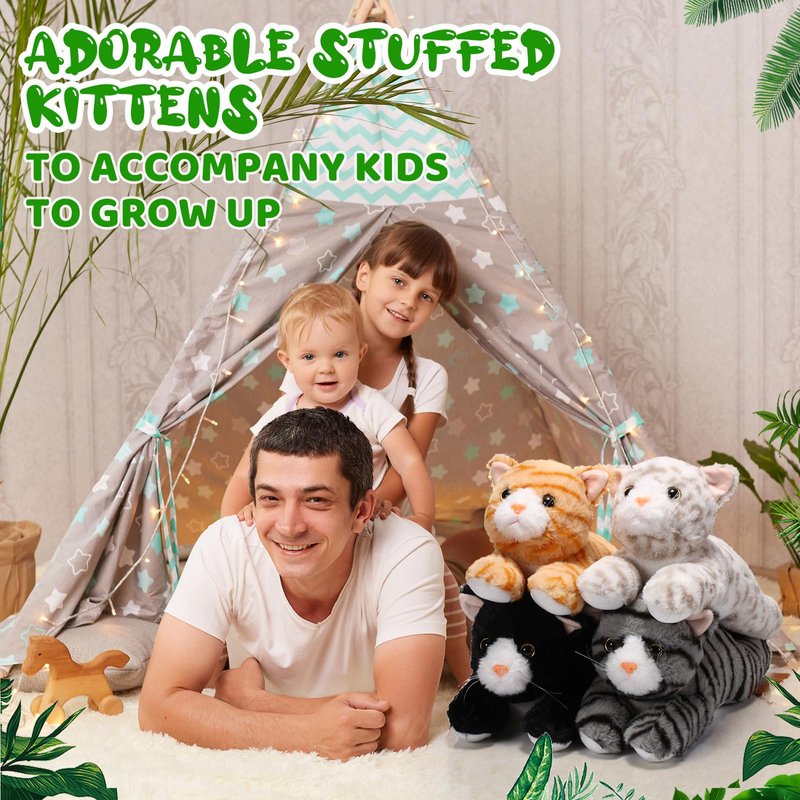 - Multiple Purposes: our stuffed kitten toys can be regarded as adorable decorations at home, rooms, sofa, offices, cars, cat themed parties, cat shops and more, and are nice gifts for baby showers, cat parties, pet parties, birthdays, baby showers, Halloween, Christmas and more; You can also take them as goodie bag fillers, centerpiece decoration, school rewards, prizes, souvenirs, etc