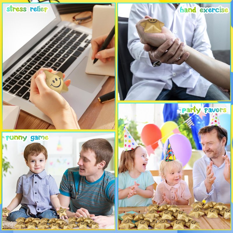 Libima 50 Pieces 2.4inch Star Stress Balls Gold Smile Face Stress Balls Motivational Mini Foam Ball Inspirational Relief Squeeze Balls Star Stress Toys for Adults Coworkers Teen School Party Favors