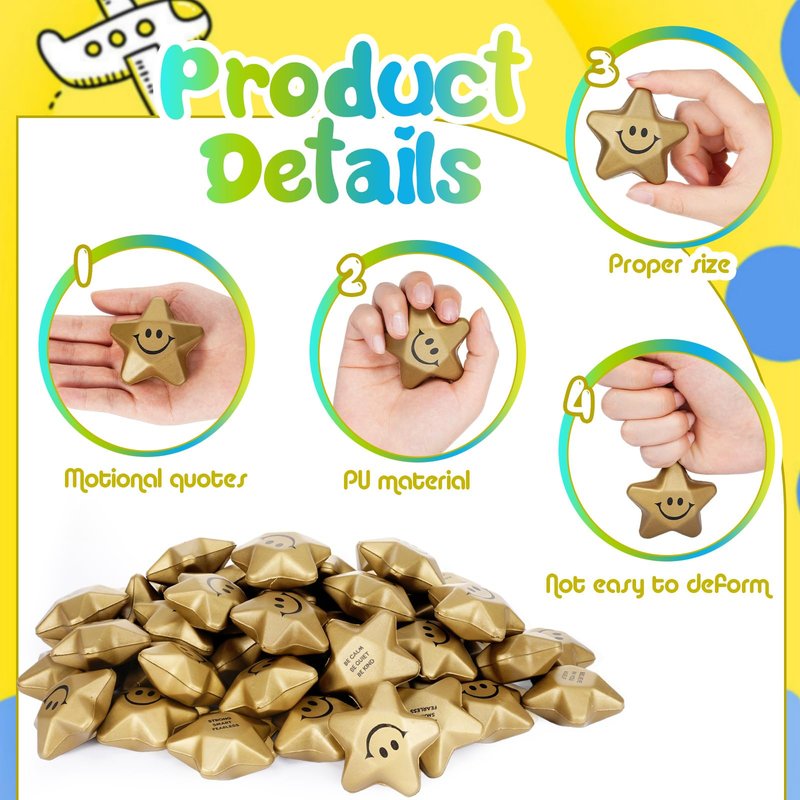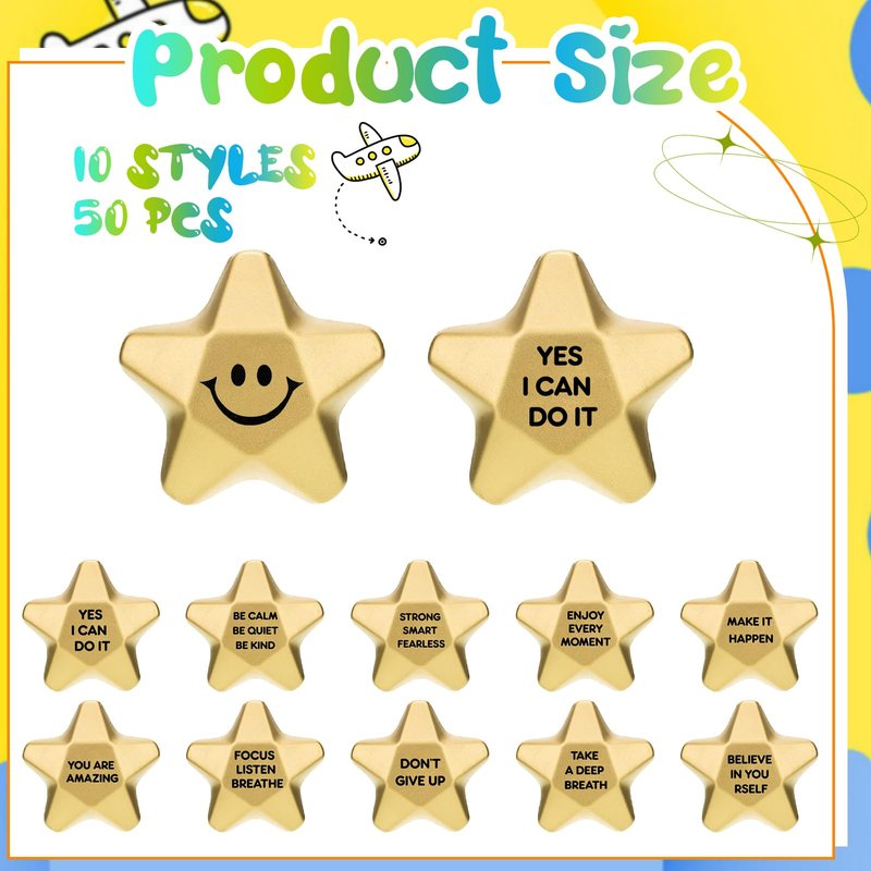 - Multi Functional: these motivational stress relief balls not only help us relieve stress and troubles, but also serve as motivating objects for people to focus and alleviate autism; People who use computers for a long time will use them to enhance grip strength; Your hands may become very sore from using the keyboard and mouse for the whole day, so exercising your hands with this star stress ball can solve this problem