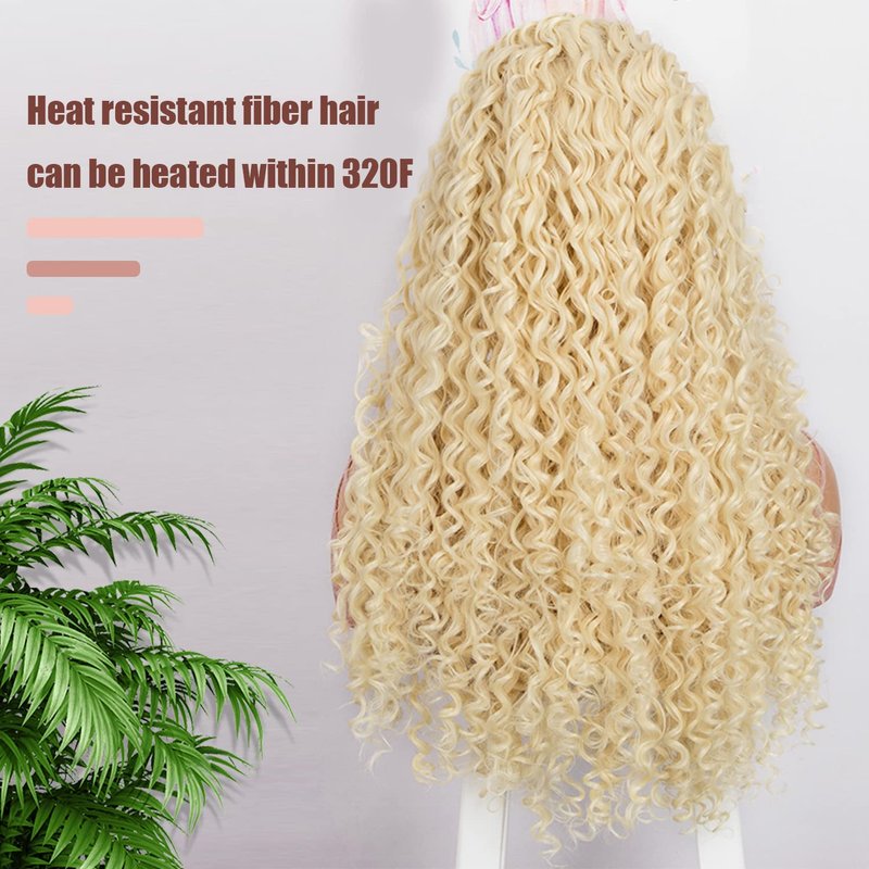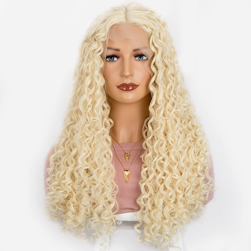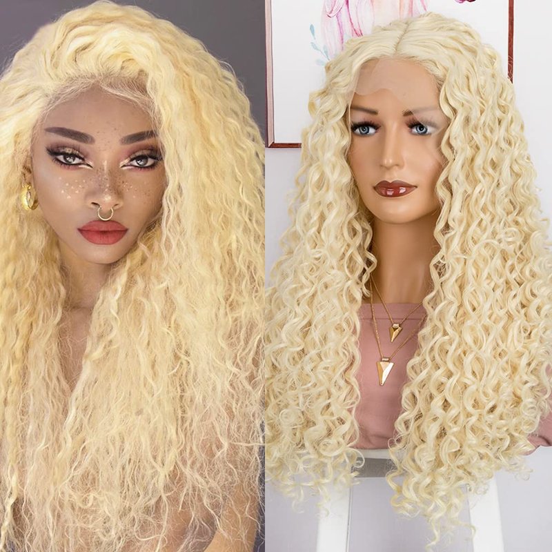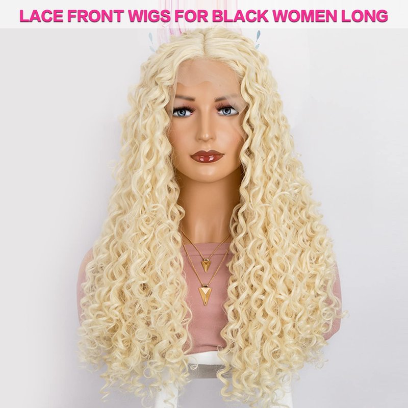 LICATEAT Blonde Lace Front Wigs for Women V Part 613 Loog Curly Loose Wave Wig Heat Resistent Synthetic Hair (26 Inch)