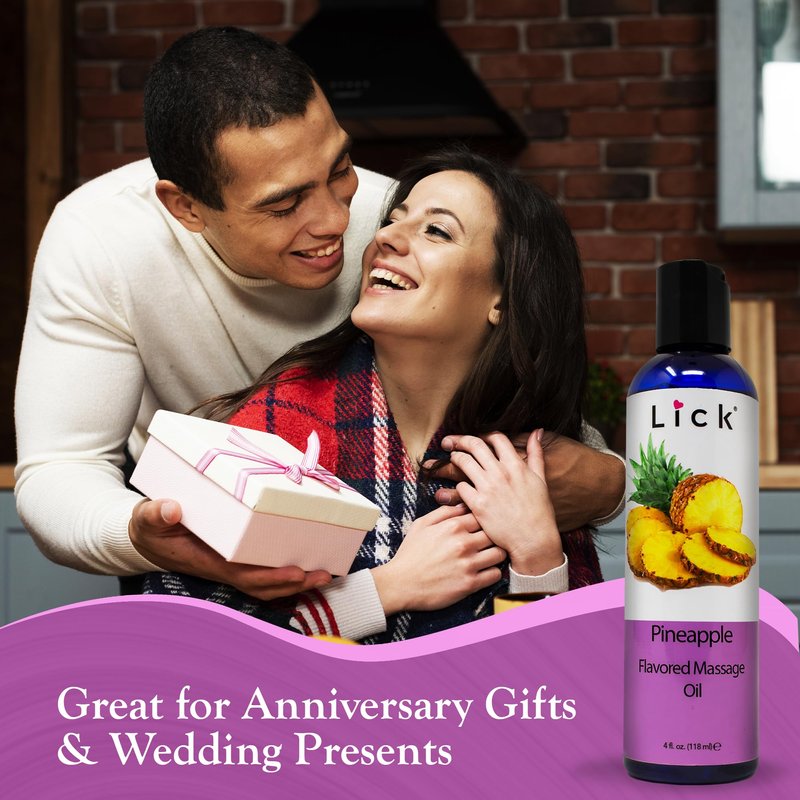 Lick Pineapple Flavored Massage Oil - Edible Body Oil Infused with Vitamin E, Sweet Almond Oil, Coconut Oil - Skin & Body Safe, Non-Sticky Feel, Vegan - Portable Travel-Ready Bottle 4 oz