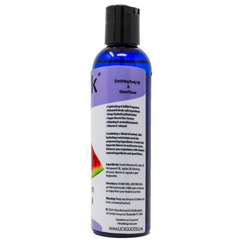 Discover the refreshing, sweet scent of watermelon with Lick's Watermelon Scented Body Oil. This versatile body oil brings the tantalizing aroma of a summer picnic to your everyday routine, making it the perfect body oil for women who enjoy the finer things in life. Our formula is an antioxidant-rich, vitamin E infused body oil that provides superior moisturizing and hydration, perfect for dry body oil use. The Lick Watermelon Scented Body Oil doubles as a body oil gel, keeping your skin smooth and supple while also acting as an after shower body oil. The oil absorbs quickly, leaving your skin feeling soft without any greasy residue. This makes it perfect as a body oil after shower, providing a layer of hydration that lasts all day. Lick’s moisturizing body oil is a fragrance body oil that takes scent seriously. The watermelon aroma is robust yet not overpowering, providing soothing aromatherapy benefits. The oil can also be used as a perfume body oil, leaving a subtle, alluring scent that lingers throughout the day. This body oil scented with watermelon is a delightful addition to your body care regimen. This hydrating body oil is gentle on your skin, making it suitable for all skin types. Our body oils for women smell good and feel even better, providing you with a comforting, spa-like experience at home. It's an in shower body oil that transforms your daily shower into a luxurious event. Lick Body Oil is an Amazon body oil that is made with natural ingredients. We are committed to providing body oils for women dry skin that are both effective and gentle. Our body oil for women is free from harsh chemicals, parabens and artificial colors. Whether you're using our body oil as a dry body oil, a shower body oil, or a perfume body oil, we are confident that you will love the experience. So why wait? Add this hydrating body oil to your skincare routine now and enjoy the benefits of a body oil perfume for women that is natural, gentle, and wonderfully scented with a refreshing watermelon aroma.