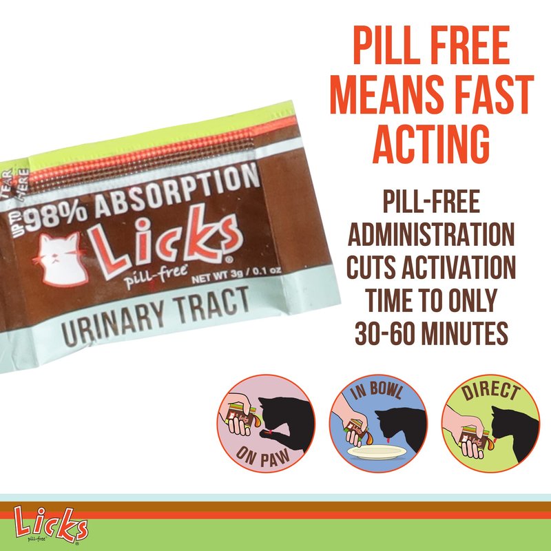 Licks Pill-Free Cat Urinary Tract Care - Cat UTI Care and Prevention Gel Packets - Urinary Tract Infection Supplement for Cats - Omega 3 Fish Oil and L-Lysine Supplement - Gel Packets - 10 Use