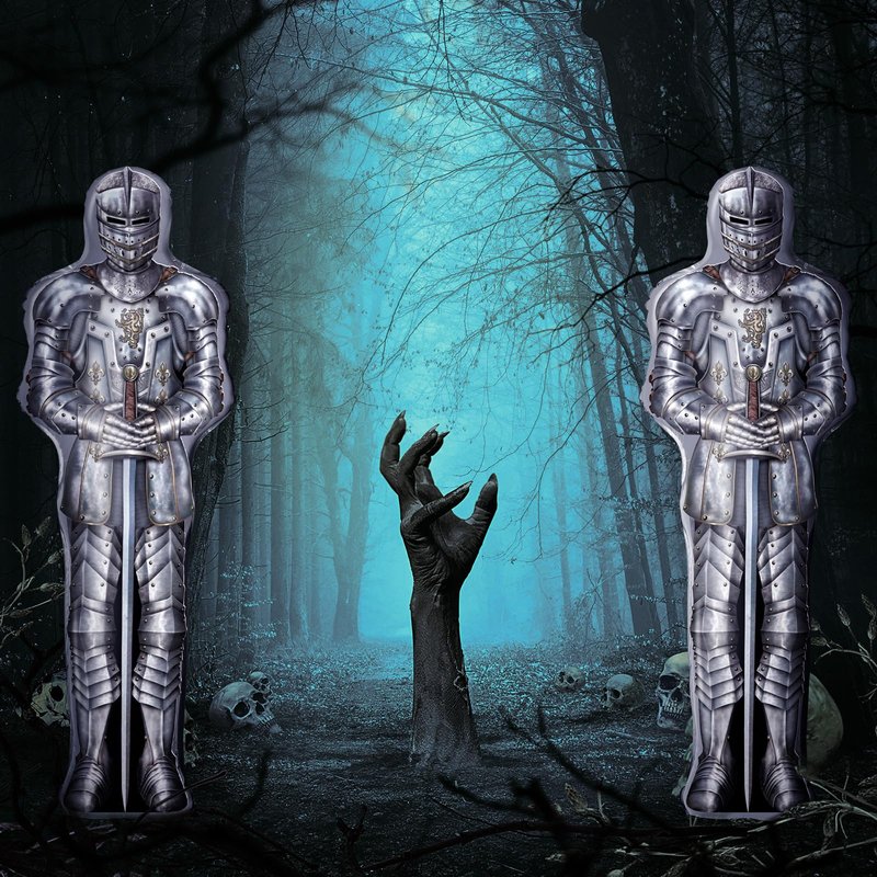 - 【High Quality】made of safe aluminium foil, non-toxic, no harm to kids lightweight and portable the clear printing is not easy to fade, creating a mysterious and serious Halloween renaissiance knight castle party atmosphere