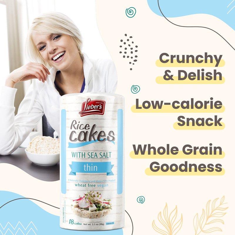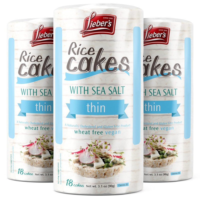 LIEBERS Rice Cakes, Kosher Certified Snack, Dairy Free, Wheat Free, Gluten Free, And Vegan options (pack of 3) (Sea Salt)