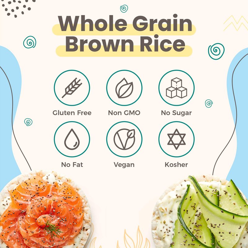 - Our Rice cakes are made using whole-grain brown rice. A diet high in whole grains has been proven to lower your risk of chronic diseases.
