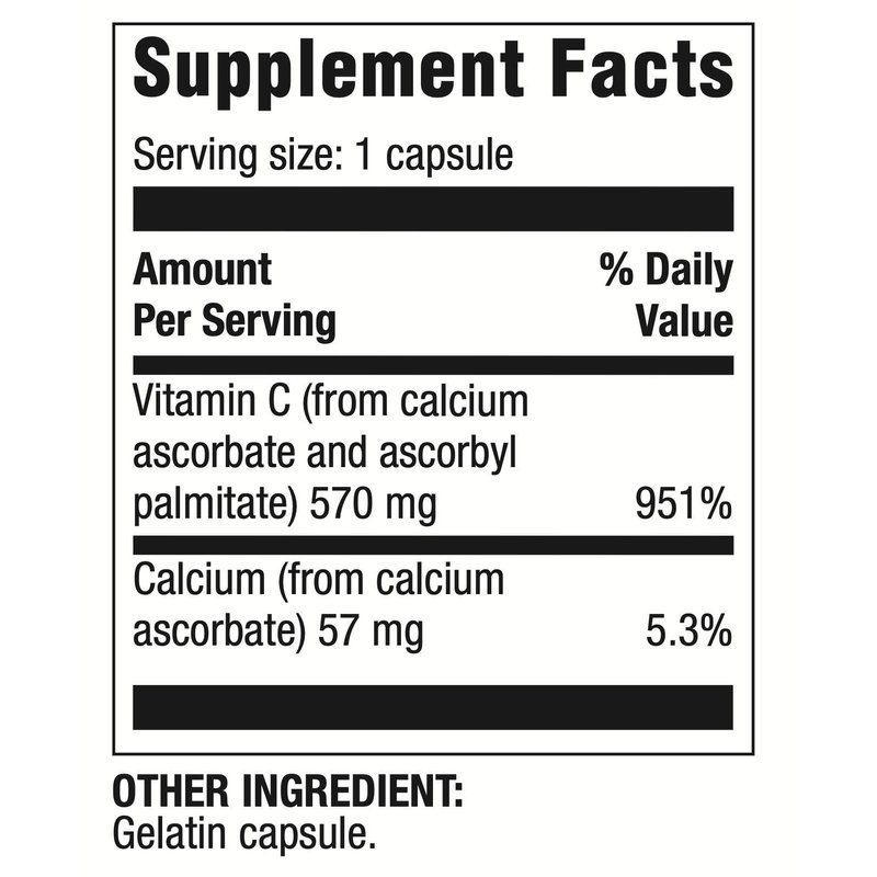 - Contents - This Water and Fat Soluble Vitamin C formula contains the following ingredients: vitamin C (from calcium ascorbate and ascorbyl palmitate), Calcium (from calcium ascorbate), Gelatin Capsule.