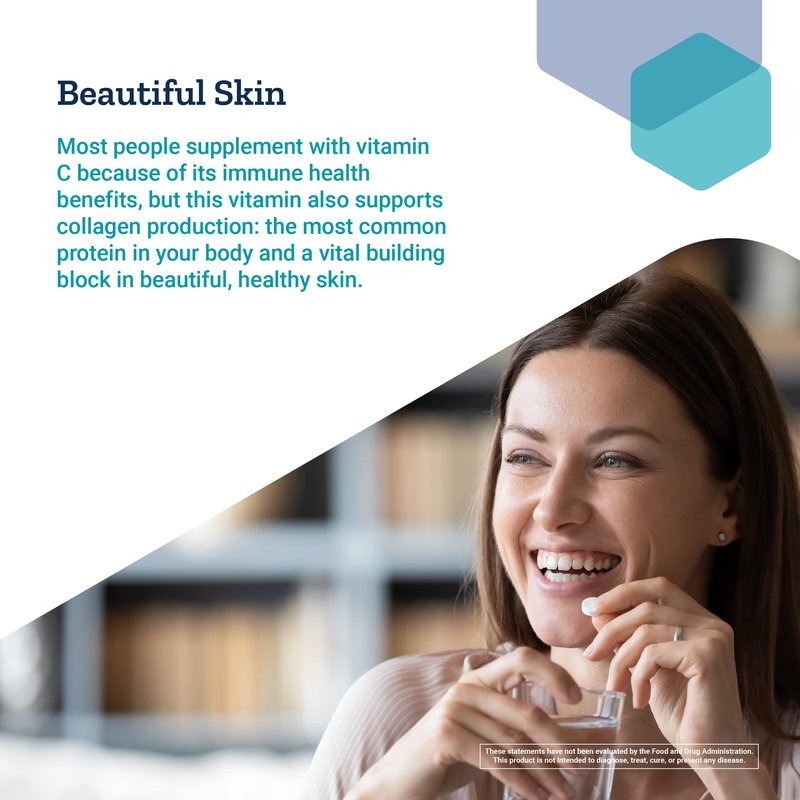 - BEAUTIFUL SKIN – Most people supplement with vitamin C because of its immune health benefits, but this vitamin also supports collagen production: the most common protein in your body and a vital building block in beautiful, healthy skin.