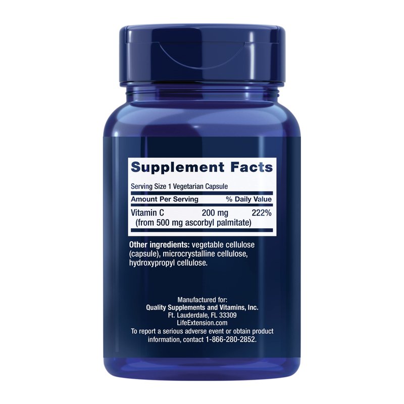 Life Extension Ascorbyl Palmitate 500mg – Fat-Soluble Vitamin C Supplement for Immune Support and Longevity – Water-Soluble Gluten-Free, Non-GMO, Vegetarian – 100 Capsules