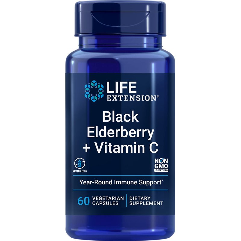 Life Extension Black Elderberry + Vitamin C - Immune System Support, Gluten-Free, Non-GMO - 60 Vegetarian Capsules