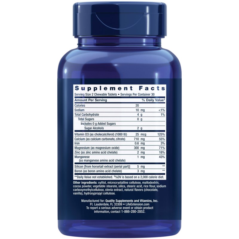 Life Extension Bone Restore Calcium Supplement Chewable Tablets, Bone Health Supplement, Calcium, Vitamin D, Minerals, Gluten Free, Non-GMO, 60 Tablets