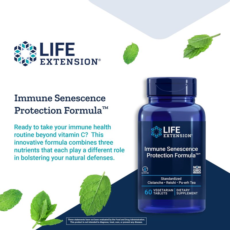 Life Extension Immune Senescence Formula Standardized Cistanche Reishi PU-ERH Tea, 60 Vegetarian Tablets