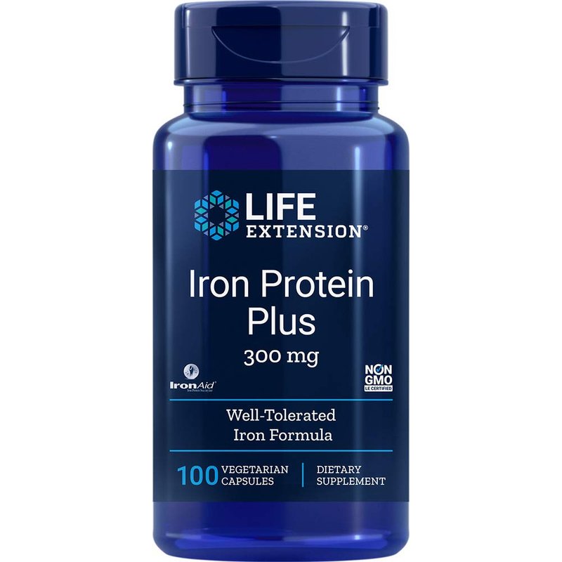 Life Extension Iron Protein Plus, iron protein succinylate, absorbable iron supplement for whole-body health, non-GMO, gluten-free, vegetarian, 100 capsules