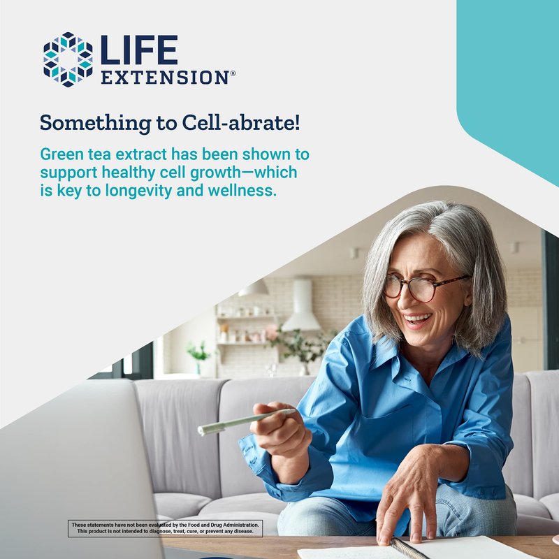 Life Extension Lightly Caffeinated Mega Green Tea Extract - 98% EGCG Polyphenols Supplement for Heart and Brain Health Support for Men and Women - Gluten Free, Non-GMO, Vegetarian - 100 Count