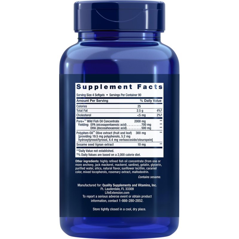 Life Extension Super Omega-3 360 Softgels, Easy to Swallow, EPA/DHA Omega3 Fish Oil, Sesame Lignans & Olive Extract