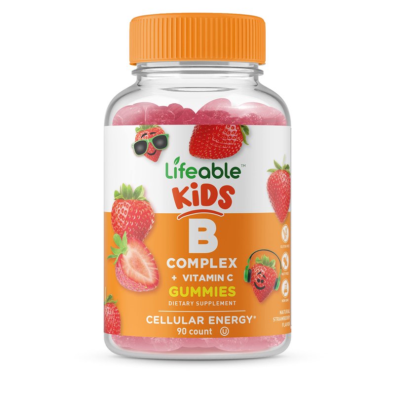 Lifeable Vitamin B Complex with Vitamin C for Kids - Great Tasting Natural Flavor Gummy Supplement - with Niacin, B6, Folic Acid, B12, Biotin & Pantothenic Acid - Energy and Nerve Support, 90 Gummies