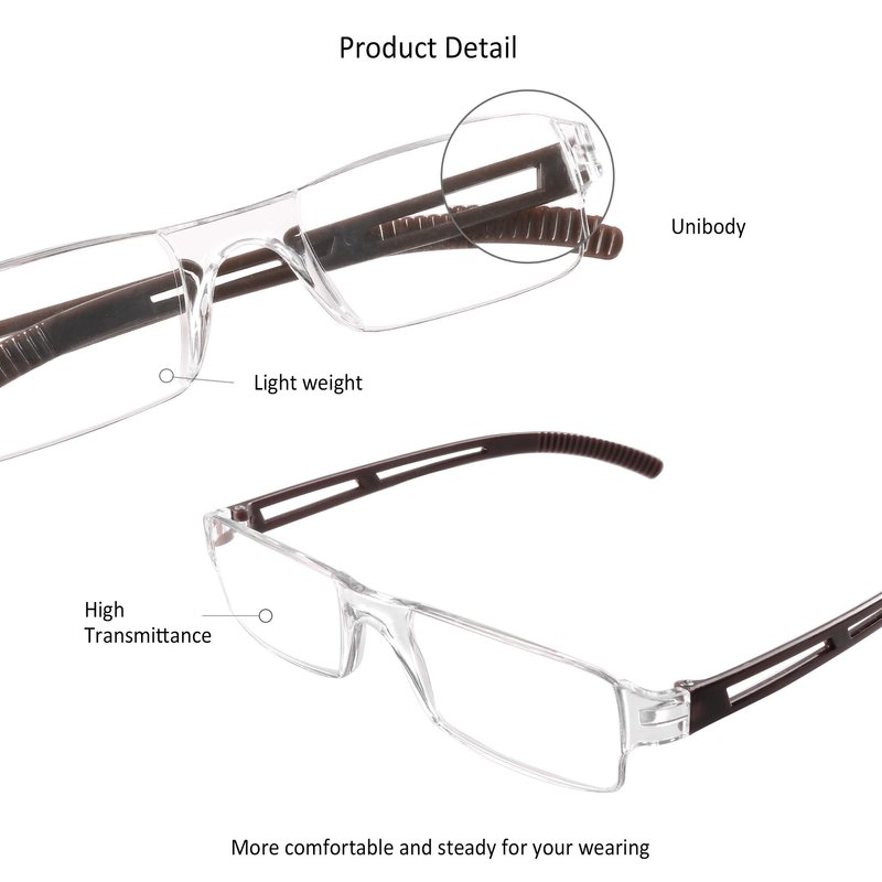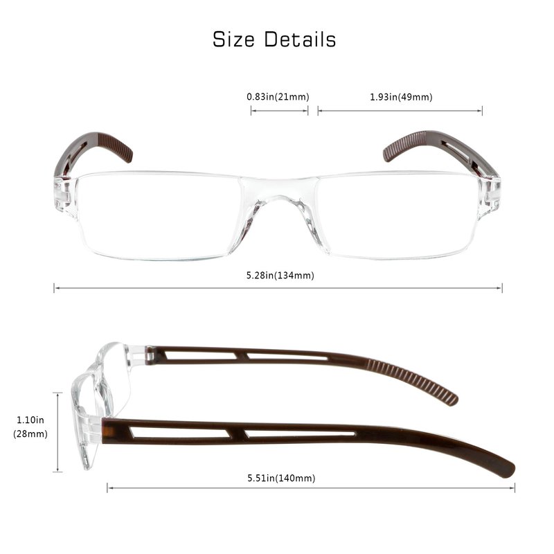 - classic rectangular frame design, ultra-lightweight, universal size fits most face shapes.