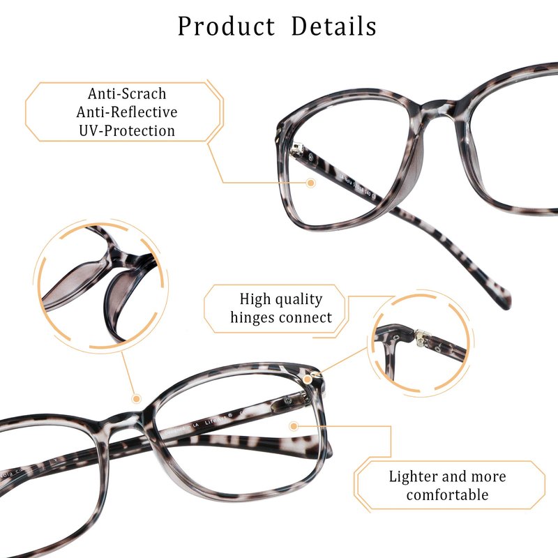 - Classic square frame design, ultra-lightweight, universal size fits most face shapes.