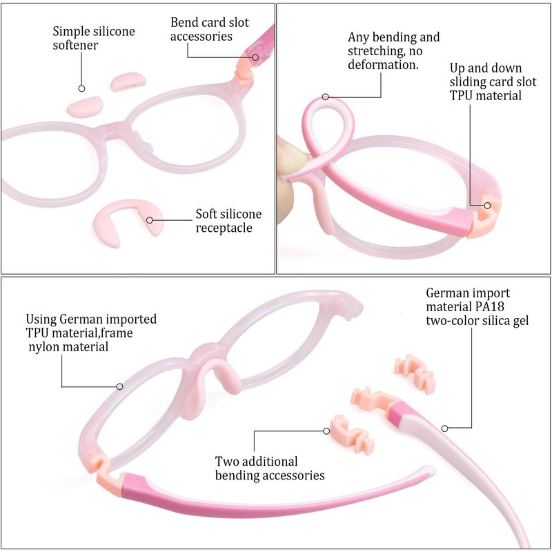 - Silicone rubber frames are the most durable, flexible and lightweight material– perfect for kids.