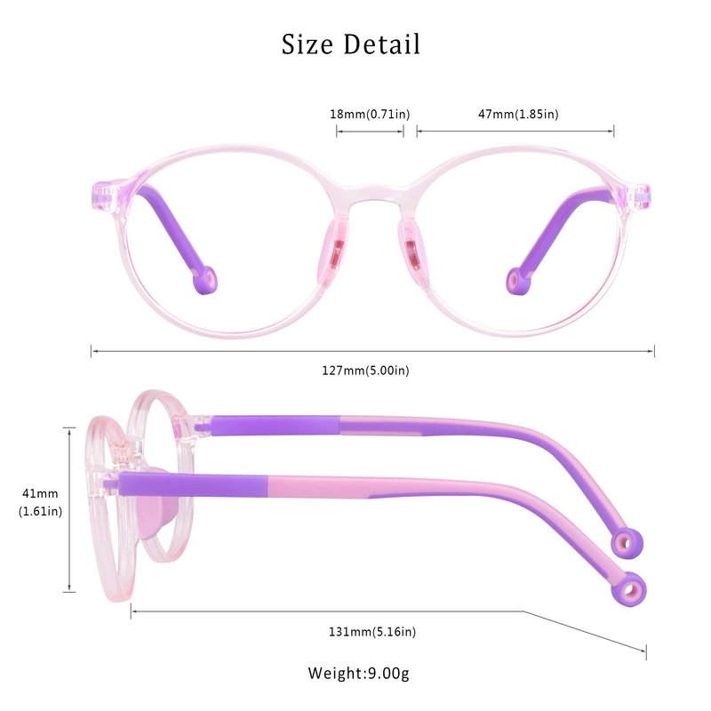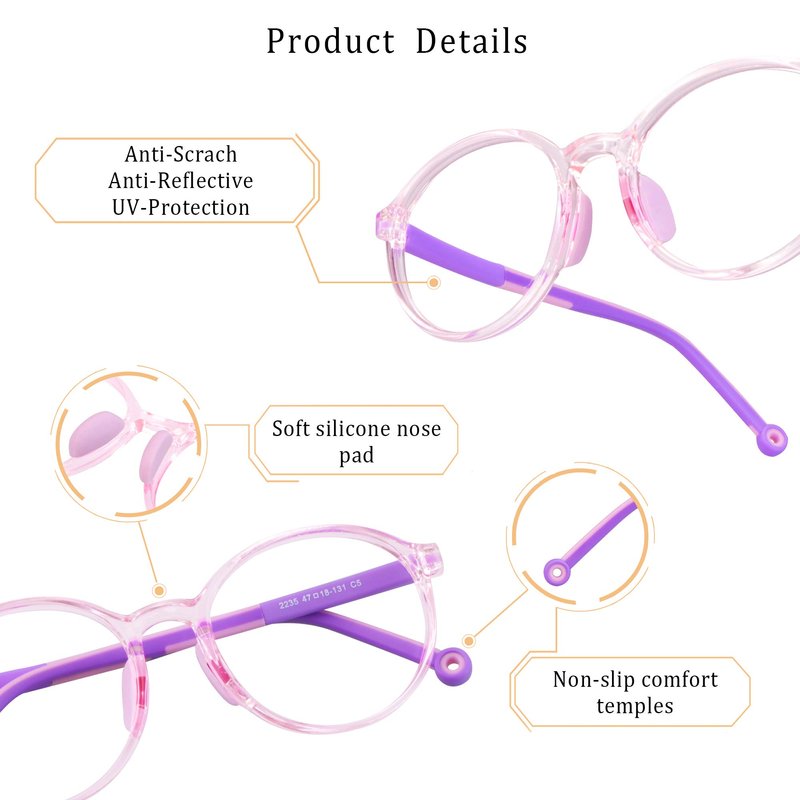 - Silicone rubber frames are the most durable, flexible and lightweight material–Nice color is suitable for 3-12 years old, can fully match the characters of children.
