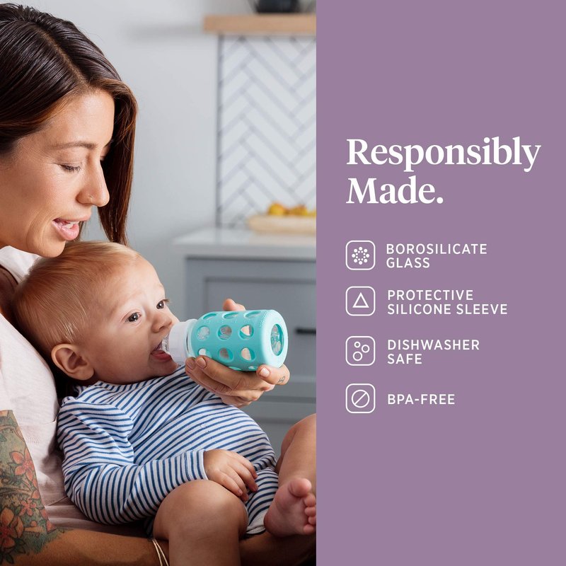 - Bottle grows with baby--use with Lifefactory stage 1, 2, 3 and Y-cut nipples, sippy caps and leakproof flat caps ; compatible with most major breast pumps