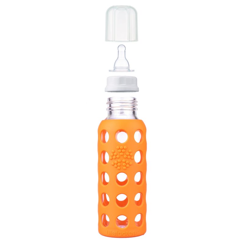Lifefactory 9-Ounce BPA-Free Glass Baby Bottle with Protective Silicone Sleeve and Stage 2 Nipple, Papaya