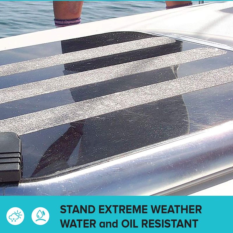 - EASY TO CLEAN: This tape has the improved strong waterproof adhesion. It can be used indoor and outdoor and any wet areas. Non-mineral surface can be clean easily with a damp towel (indoor) or spray with a hose (outdoor). This tape is ideal for the bathtub, shower, locker room, boat, around a pool and other areas with slippery, wet conditions.